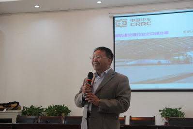 首先,潘皝老师详细介绍了中车株洲电力机车有限公司的企业背景,企业文化和相关主营业务。其次,给在座师生讲解了常见轨道交通车辆词汇以及常见投标文件表达句型,这些干货让同学们受益颇多。最后潘皝老师介绍了公司翻译团队的基本情况和个人的口笔译实战经验。他对同学们说道,想要做好交通行业的口笔译,需要大量的实践积累和经验总结,希望同学们在校认真学习,不断提升自身能力,将来可以为交通行业做出贡献。