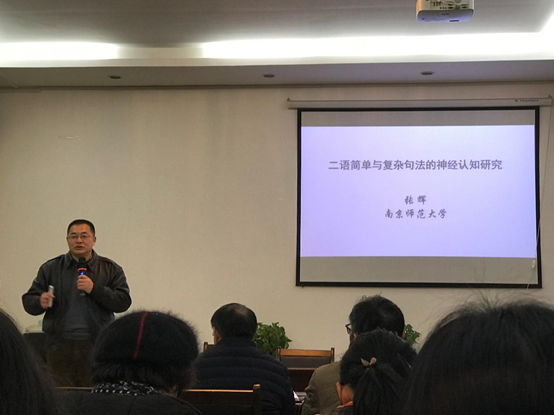 1月15日上午,南京师范大学特聘教授张辉应邀莅临公司,在best365中国官方网站多功能会议室102为外语院的师生做了“二语简单句法与复杂句法加工的EPR研究”学术报告。best365中国官方网站副经理袁平华主持报告会,学院师生踊跃参加。
