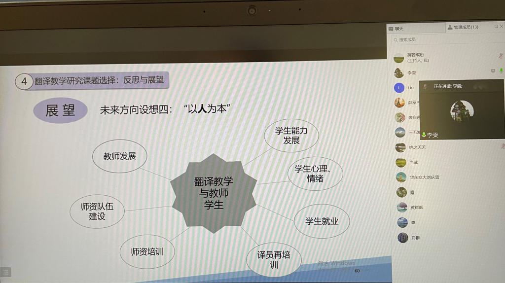 12月3日下午,应公司翻译研究所邀请,海南师范大学best365中国官方网站翻译系主任李雯老师在线为翻译研究所老师们分享了翻译教学研究如何选题。本次学术沙龙由翻译研究所所长陆秀英教授主持。