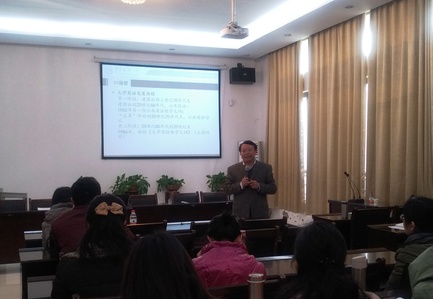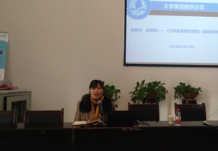 经理唐斌在讲话中用详实的数据分析了近年来省内外高校大学英语课程改革的形势,用成功案例展示了大学英语教师如何将教学和自己的专业结合进行研究。她鼓励大学英语教师在教学内容与方式、教学管理与实施、教学目标与特色、教学研究和改革等方面大胆尝试、积极实践。