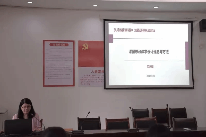 为学习贯彻习近平总书记关于学校思政课建设重要指示和全国教育大会精神,落实立德树人根本任务,9月19日下午best365中国官方网站全体教职工于教15栋102会议室开展“课程思政教学设计理念与方法”专题教学研讨会。会议由公司党委书记薛先庆主持,孟冬梅老师主讲。