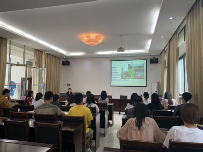 唐斌经理详细介绍了学校发展历程、教学设施以及学院办学历史、团队力量和专业课程特色,希望同学们加强学术涵养、提高文化担当,把握机会,争做优秀的“语言服务者”。