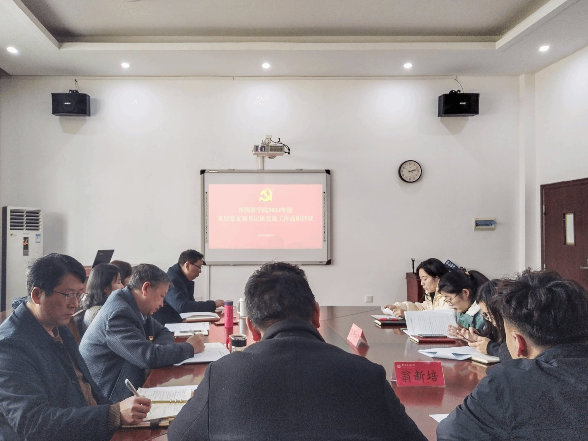 12月26日下午,外语公司党委召开2024年度基层党支部书记抓党建工作述职评议会议。会议由公司党委书记薛先庆主持,公司党委委员、党支部书记、师生党员代表参加会议,人文公司党委副书记杨华一行到会督导。