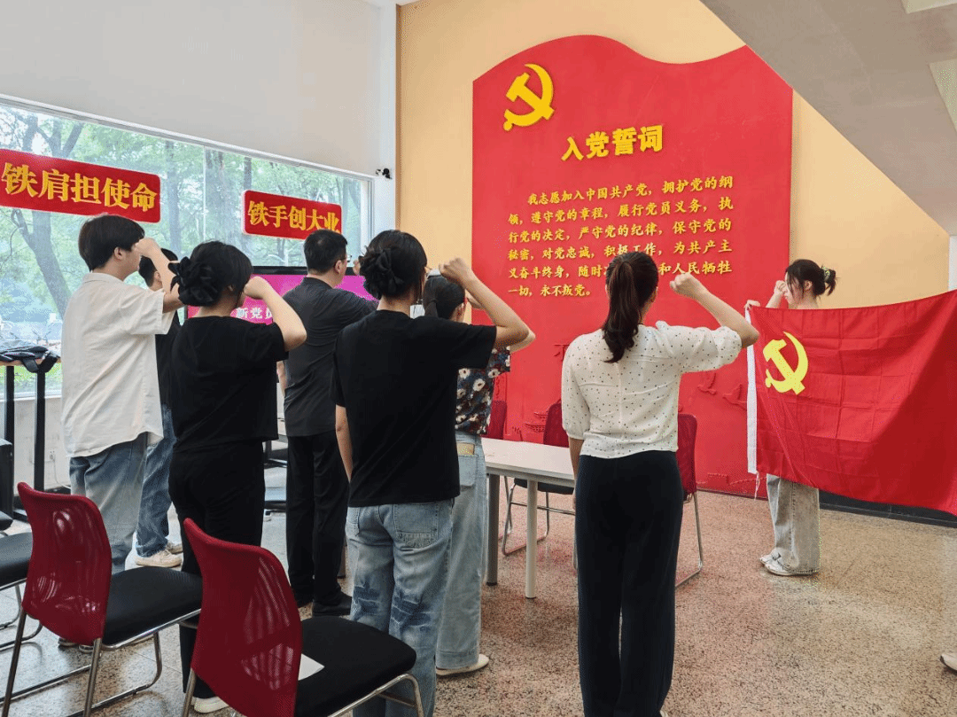 一声誓言,一份承诺,一生坚守。新党员代表翻译员工党支部陈晋在发言中表示,要把入党誓词转化为“三种能力”:在理论学习中提升政治定力,在中外交流中坚定文化自信,在专业实践中建设文化强国。一次课堂讨论中的真理捍卫,一次社会实践中的民生调研,一次国际交流中的立场坚守,都是对党员身份的生动诠释。