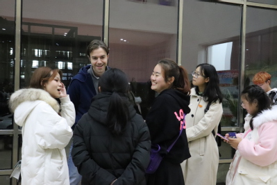 11月28日晚,由18级国贸一班主办的本学期第十二期英语角活动在外院楼一楼大厅顺利展开。外教Drew、Dahlin、Amine应邀参加。