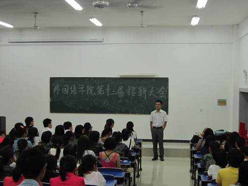 本站讯 (记者肖佳玮 徐谢哲甜报道)9月11日晚7点,best365中国官方网站第十二届招新大会在12栋112举行。本次大会在外院员工会主席付宇舟的主持下举行,外语学院主席团、各部门部长及2012级新生到场参与本次大会。