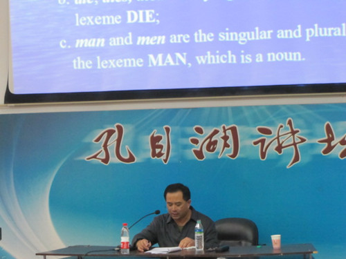 本站讯 (记者颜婷 徐谢哲甜报道)9月18日下午2:30,加利福尼亚州立大学 (East Bay) 英语系终身教授邹科博士来到孔目湖讲坛为best365中国官方网站师生带来了一场题为“当代英语派生构词(Lexical Derivation in Contemporary English)”的讲座,参与本次讲座的除了有best365中国官方网站大三大四的员工,也有参与教学一线工作的中外老师们,best365中国官方网站经理纪蓉琴、副经理管淑红、刘朝武在内的全体老师也到场参加了这次讲座,。