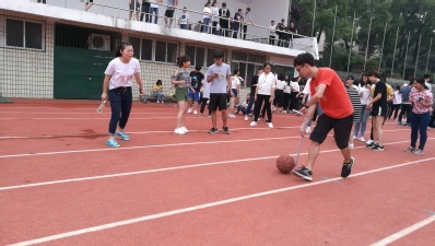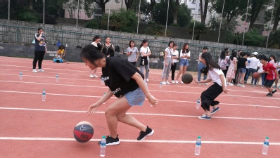 此次运动会由大一、大二全体同学参加,共有坐地起身、九人十足、赶“猪”跑、力拔山河、秦王绕柱及搭轿子六个活动项目。首先进行的是赶“猪”跑环节,运动员们在起点用一根木棍拨动球,并将“猪”(球)赶向猪栏(桌子)。看似简单的游戏实践起来却是困难重重,参赛选手个个小心翼翼,生怕把“猪”赶跑了,又保持着敏捷迅速的动作,不甘落后,偏偏比赛过程中“意外”频发,全程可谓紧张刺激,引来围观同学的阵阵高呼。更加考验运动员的还有“九人十足”,相邻的两位参赛人员将左右腿绑在一起并向前走,该环节检验着运动员间的默契与向心力,其中16翻译一班以出色的配合脱颖而出,“一二!一二!”在一声声整齐的口号带领下,他们迅速冲向终点,并夺得该环节的冠军。