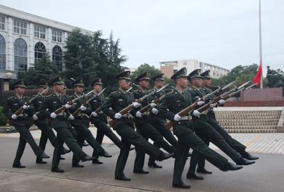 升旗礼于早上六点四十正式开始。随着一声“升旗仪式开始”落下,国防生端枪扛旗铿锵走来,步履稳健,英姿飒爽。在奏唱国歌的过程中,全体人员心怀敬仰,注视着鲜艳的五星红旗冉冉升起,心中是对祖国的崇高敬意。