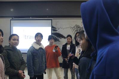 据了解,本次英语角以“travel”为主题。前有清明,后是五一,小长假出游去哪旅行的问题引起在场同学的热议。活动伊始,主持人介绍主题,暖场小游戏“单词接龙”更是让大家兴趣高涨。同学们分成两组轮流作答,一旁观众也心情激动,更有精美礼品作为奖励,现场氛围十分热烈。在自由讨论环节中,同学们围在一起,和外教们沟通交流。或仔细聆听、认真思考,或眉飞色舞、畅所欲言,在分享的过程中,不仅拉近了同学们之间的距离,而且增长了见闻,分享快乐,同时提高自己的口语表达能力。