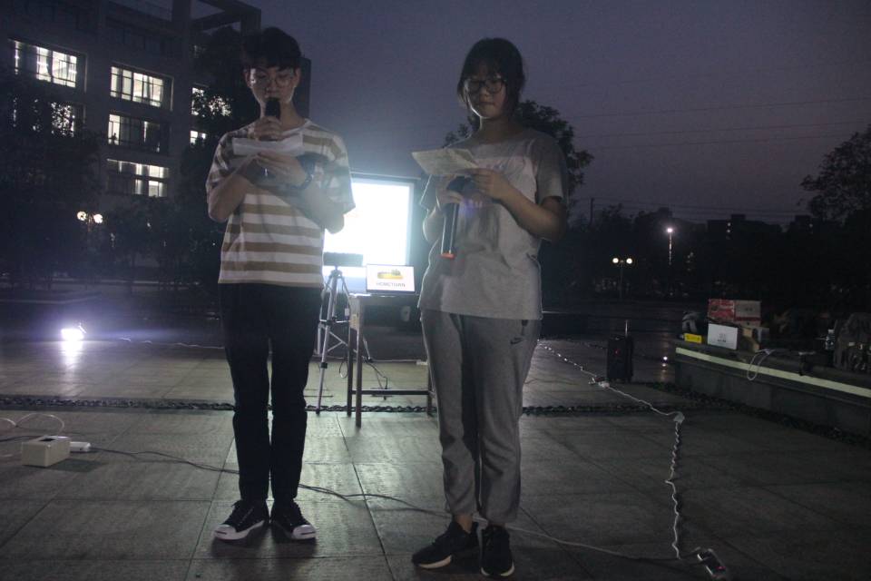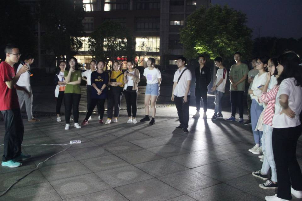 “I watch the moon, and I miss my hometown.”4月25日晚,由18级英语(国际贸易)三班举办的英语角活动于外院楼前广场如期举办。外教Inma、Marc应邀参加本次活动。