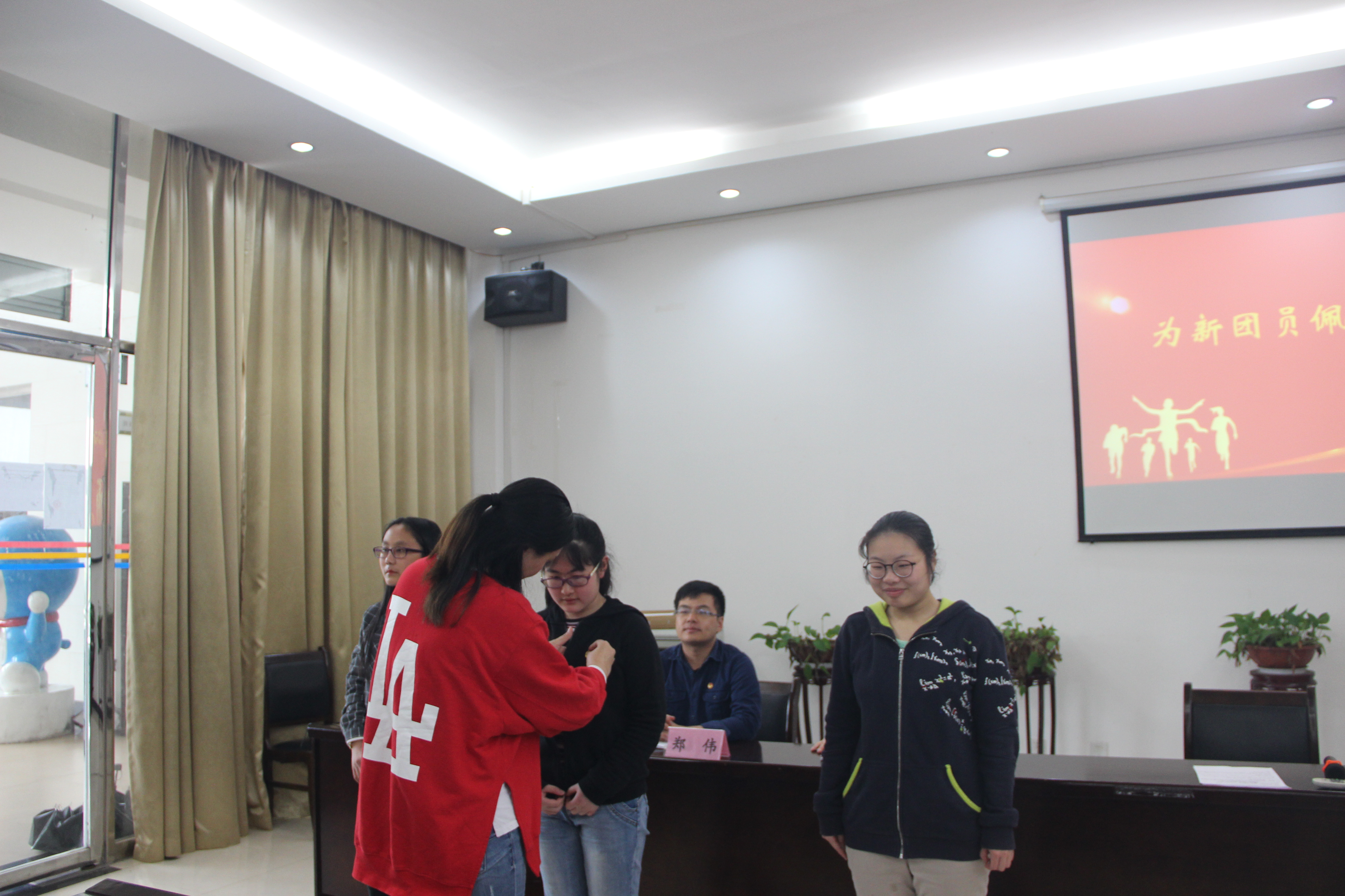 公司公司党委副书记王朗表达了对青年团员美好的祝愿。他希望在座的团员青年增强团员意识,让团员意识根种在脑海。在这个特殊的节日里,王朗书记祝福同学们青春不老,节日快乐。他说时代赋予我们实现两个一百年计划、中国梦的历史责任,作为当代青年要把先辈们的爱国主义精神传承下来,把爱国心,报国情化之为我们奋发有为的精神动力,向上,向善,向学。团员青年们既要脚踏实地,增强本领,又要仰望星空,有心系家国的情怀,始终坚持与党同心,与人民同行,把我的梦,中国梦紧密的联系在一起,让我们的青春年华在实现中华民族伟大复兴的岁月中焕发出绚丽的光彩。最后全体高唱中国共产主义青年团团歌《光荣啊,中国共青团》。