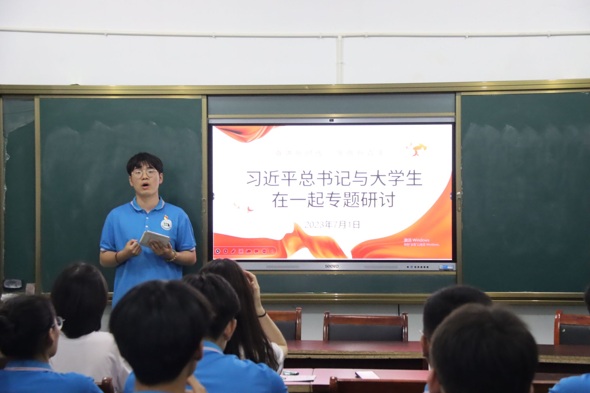 7月1日,于建党102周年之际,在外语学院学工办副主任、团委副书记熊弯老师与电气学院学工办副主任、团委副书记夏圣伟老师的组织下,外语学院与电气学院联合举办员工骨干“习近平总书记与老员工在一起”专题研讨会