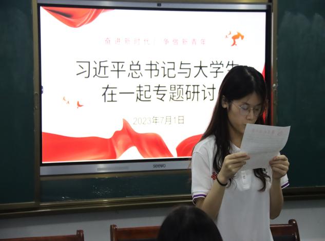 随后,由外语学院英西复语专业宋添香同学通过PPT,讲述了习近平总书记过去十年在各大高校的重要讲话以及与员工交流交心的故事,分享了习近平总书记对青年的期望与嘱托