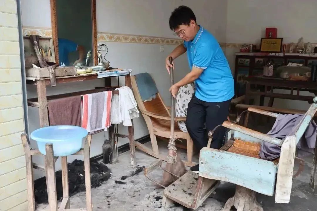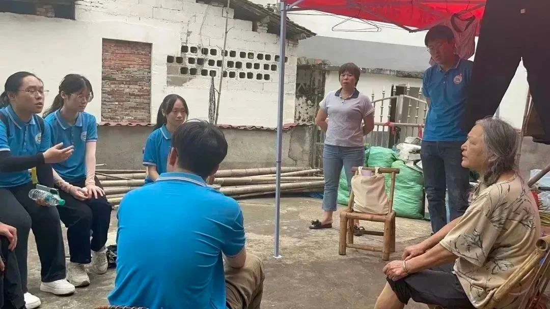 电气-外语学院“火车头”暑期实践队队员们帮助身体不便的老党员打扫卫生,清扫垃圾。并在告别时,为老党员们送上牛奶以表慰问。