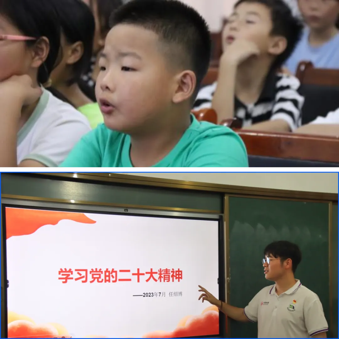 实践队开展了以“童心向党”为主题的支教活动。通过简单的自我介绍与小游戏,队员与孩子们迅速熟悉。宋添香同学为新篁乡的小朋友们带来了一场生动有趣的安全教育课,通过“孤泳者”这首改编歌曲,以小朋友们喜闻乐见的创意方式,筑牢夏季防溺水“六不准”,圆满完成《珍爱生命 预防溺水》宣传活动。
