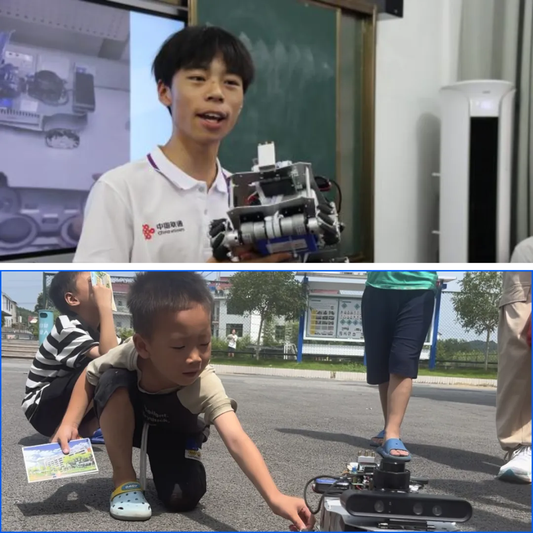 此外,汪灶瑞同学向小朋友们展示并介绍了公司同学研发的智能小车,讲解相关原理及基本构成。从“大脑”——主控板,到“眼睛”——深度相机和激光雷达,再到“脚”——麦轮,生动形象地向小朋友们描述了小车的构成,激发了孩子们对于人工智能的兴趣,在心里埋下了一颗科创的种子。