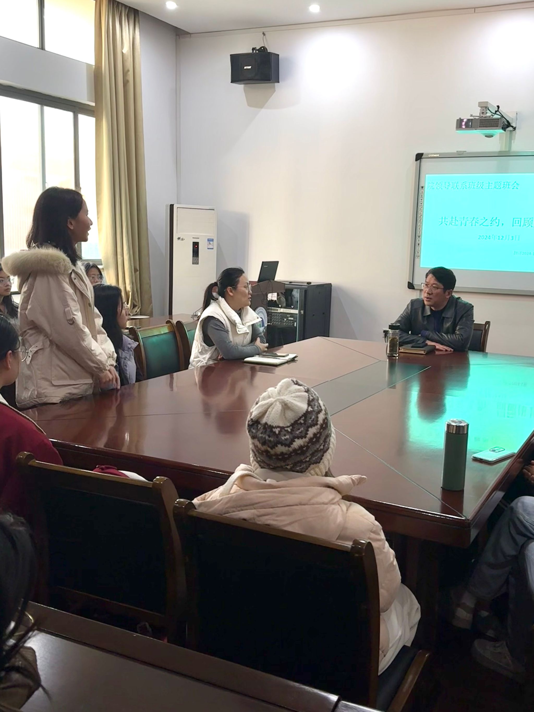 12月3日下午,翻译2024-1于学院楼308会议室开展了“共赴青春之约,回顾成长之路”主题班会。本次班会由班长吴姚主持,公司党委副书记光辉、辅导员徐蒙蒙出席本次活动。
