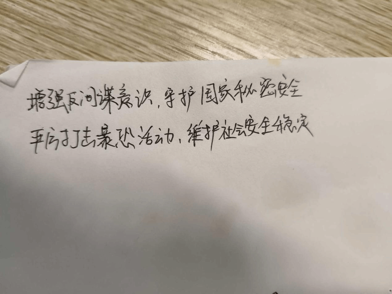 为了减少间谍和暴恐行为,提高员工的预防间谍活动和暴恐活动的意识,让罪恶在摇篮中被抹杀,保证向上的心理状态,公司于2024年11月18日到11月24日举办了“反间谍安全防范,防范暴恐活动”系列的主题班会,并让员工书写了反间谍安全防范,防范暴恐活动的标语,使员工进一步认识到防范间谍活动和暴恐活动的重要性。