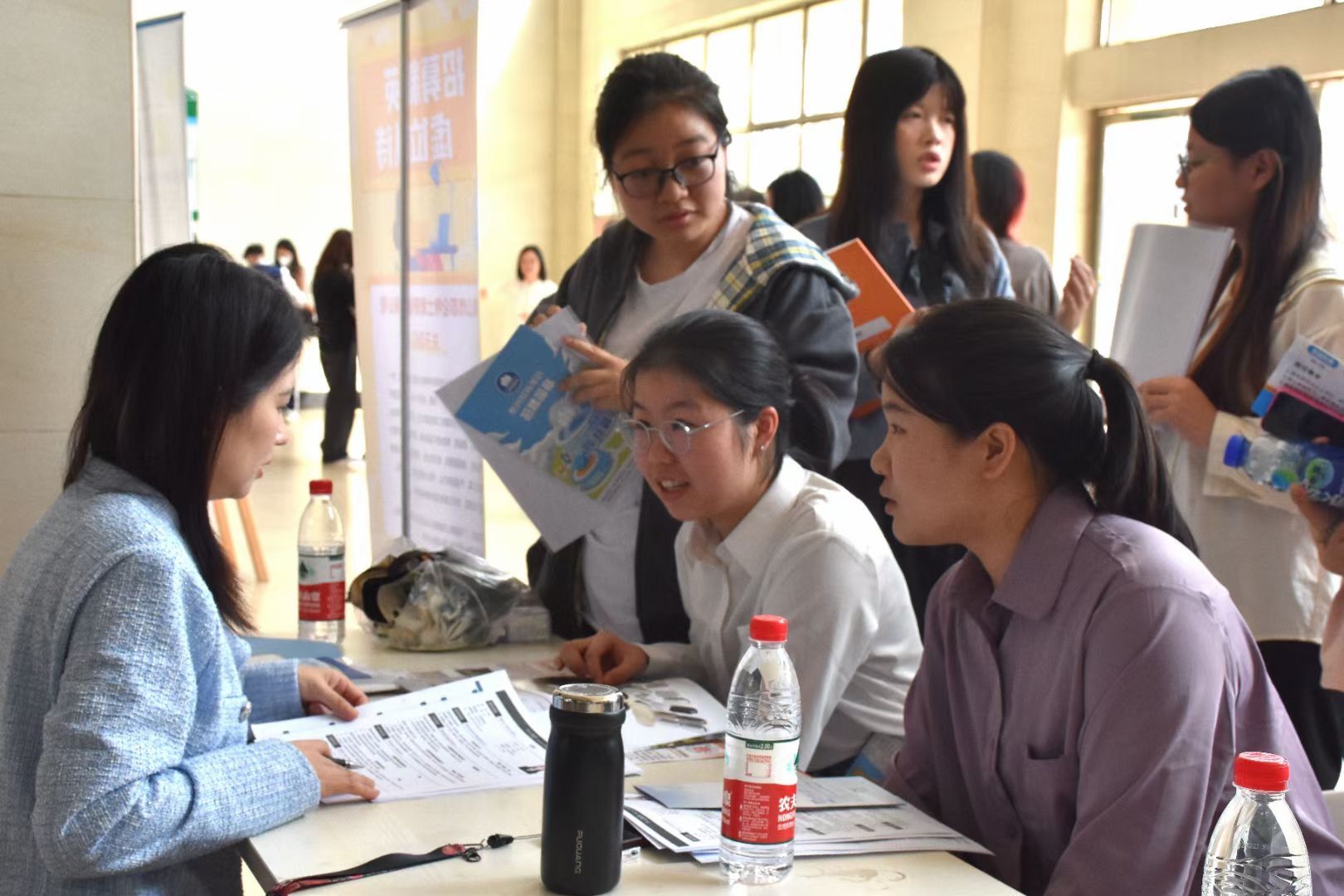 招聘会上,各企业招聘人员通过发放宣传册、面对面洽谈等方式,向毕业生介绍了企业主营业务、岗位需求、工作环境、薪资福利等概况,加深了公司毕业生对各企业的了解,便利其进行更有针对性的就业选择,毕业生们也积极投递简历,主动了解企业的用人需求和待遇福利等。