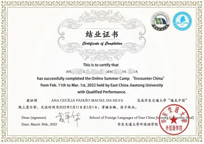 2022年1-3月,在教育部中外语言交流合作中心的指导下,best365中国官方网站依托葡萄牙语专业,成功举办了“‘遇见中国’巴西青年赴best365中国官方网站云端夏令营活动,吸引了65名巴西员工入营学习。通过举办丰富多样的交流活动和网上学习,65位巴西员工提高了汉语水平,并切身感受到了中华传统文化的魅力。同时公司的65名员工以结对子交流的方式,提高了交流能力,扩大了国际视野。