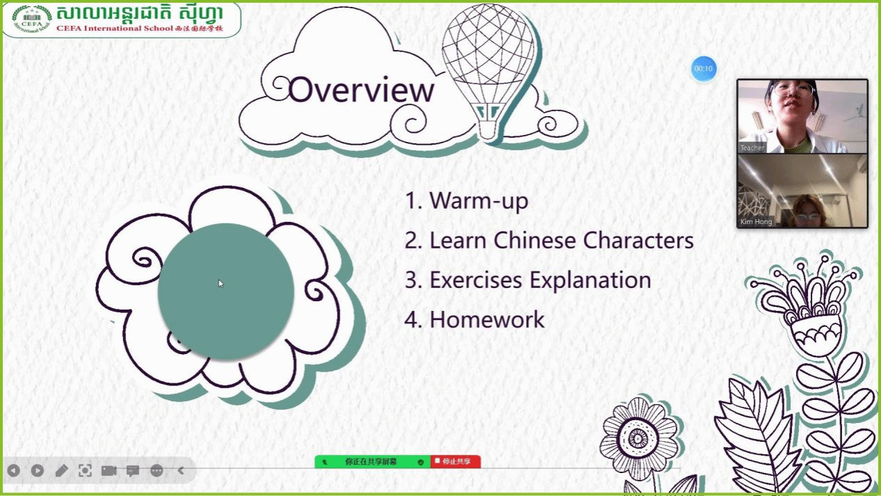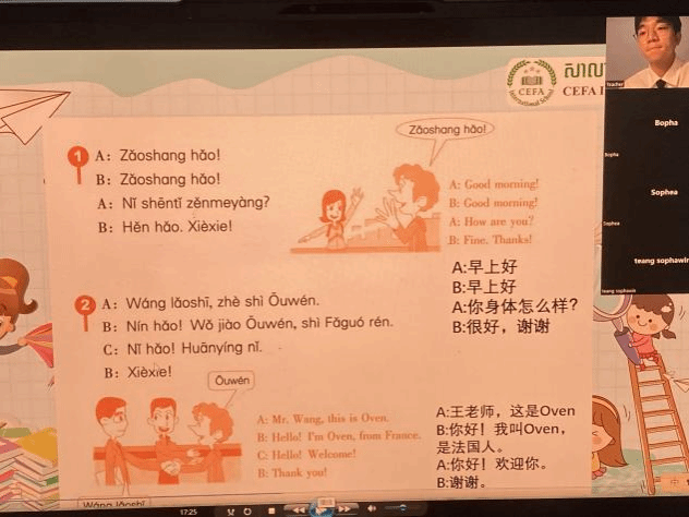 自2016年起公司与柬埔寨暹粒省国际学校于签订友好合作协议以来,双方积极开展汉语教学合作项目,但由于疫情原因,2022年开始,中文志愿教学改为线上形式,今年的志愿活动仍为线上。此次活动公司共有5名志愿者参与,分别是2020级翻译陈浩鑫;2019级英语(国贸)张怡悦;2020级翻译王小格;2020级英语(英西复语)杨佳涛;2020级英语(国贸)姚欣怡。让我们一起来听听属于他们的志愿活动故事吧。