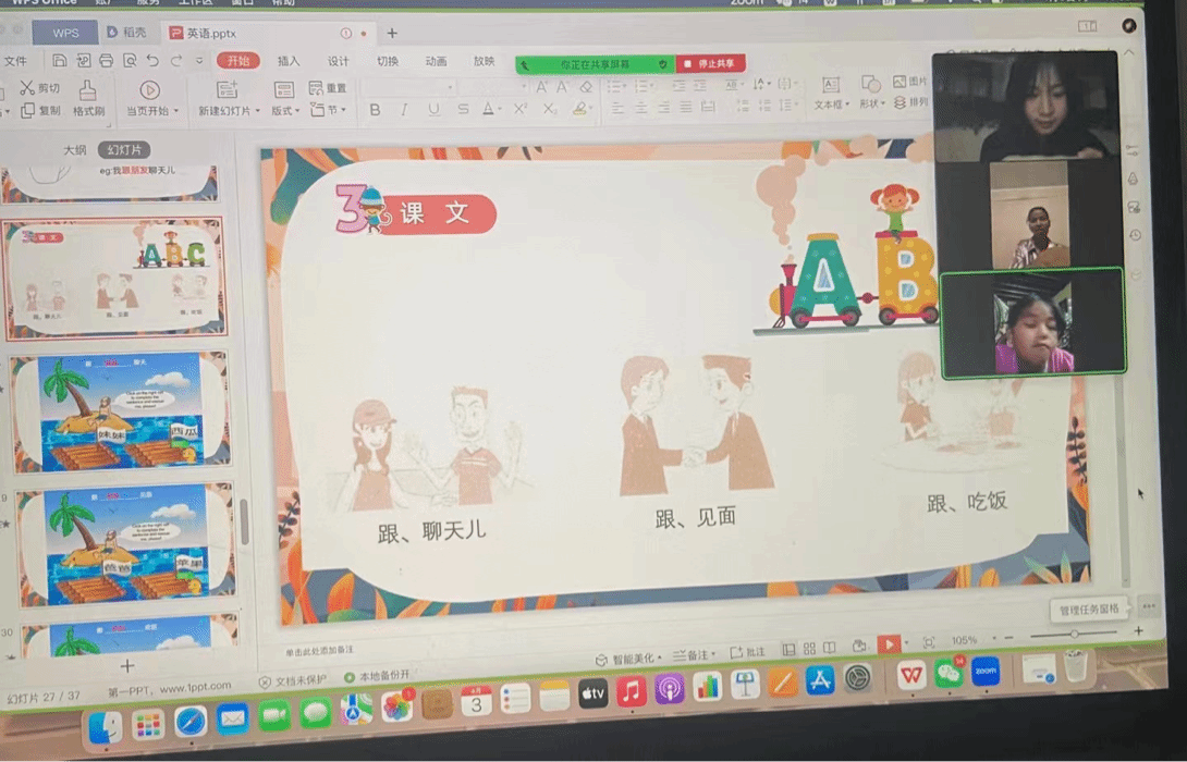 虽然我们只是通过屏幕进行交流,但与员工的互动让我们建立了亲密的师生关系。尽管我们身处不同的国家,但这种跨文化的友谊将持续下去,超越教室之外。我相信这个经历不仅是一次教学活动,更是一次宝贵的人生体验。