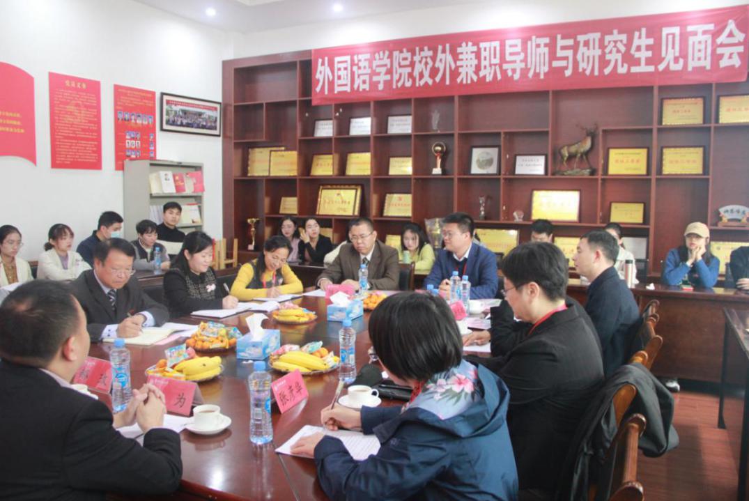 2020年11月21日,江西国际经济技术合作公司总经理李必亚等8位校外兼职导师应邀参加best365中国官方网站20周年院庆活动,与外院研究生在学院308会议室相聚一堂,为外语学院发展及公司产品建言献策。会议由外语学院副经理袁平华教授主持,MTI中心主任陆秀英教授、副主任樊梦博士、研究生秘书钱淑群老师及2019级、2020级研究生参加。
