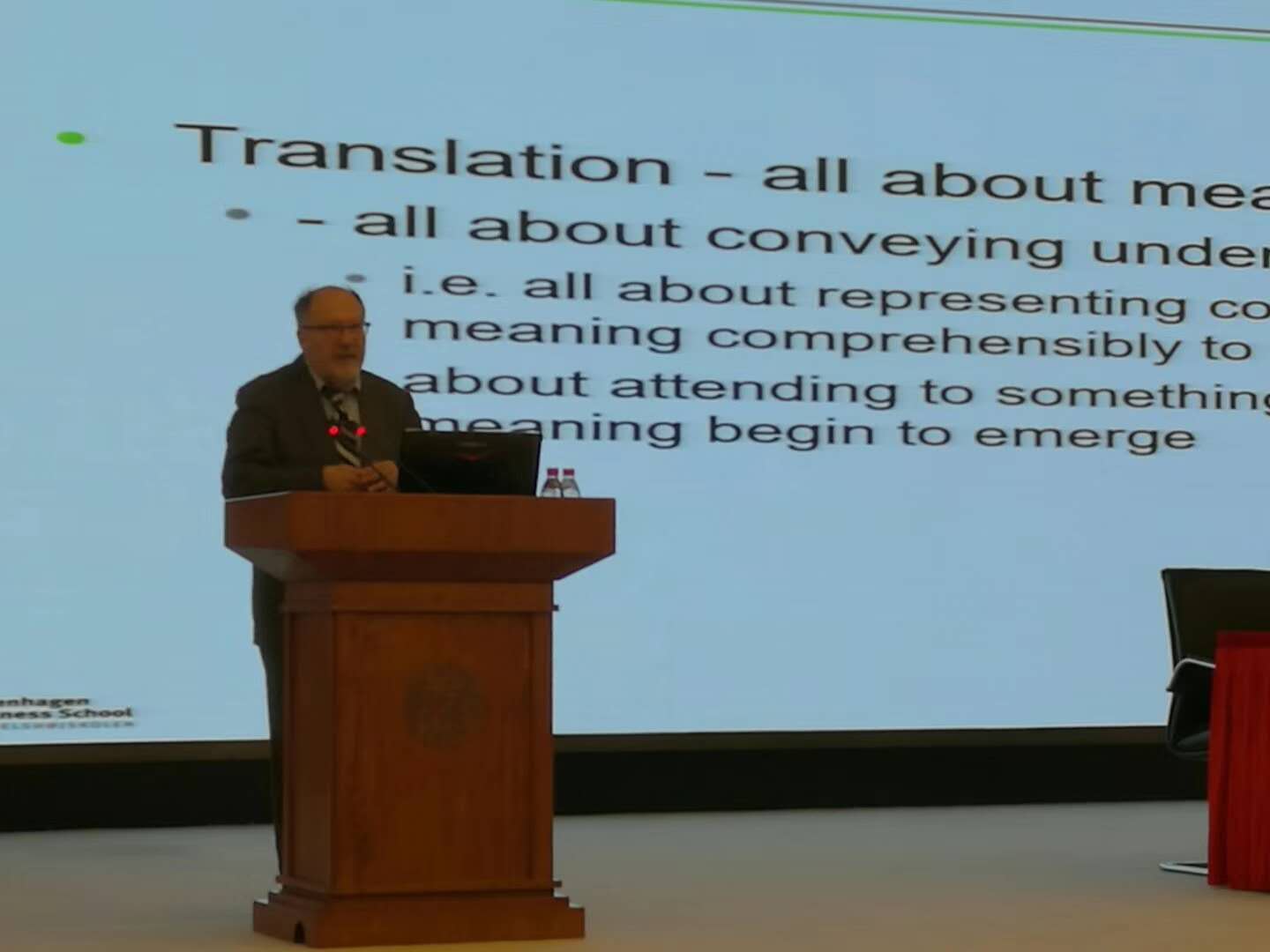 21日上午,继续主旨发言环节,熊学亮教授分享了构式基点论的翻译学意义;李德凤教授分享了自己团队关于认知过程研究的最新成果;SHI Jie教授则对人工智能翻译是否能完全取代人工翻译做出分析;WANG Caiwen教授则对认知视角下文学和教学实践中的同传定向性问题提出自己的观点;卢植教授则对认知过程和认知负荷相关的隐喻问题展开论述;随后,Dr Gavin Adair、傅敬民教授相继分享自己团队的最新研究成果。