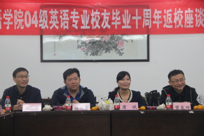 浓浓母校意,依依学子心。11月3日上午,公司英语专业04级员工返校座谈会在外院楼102会议室拉开帷幕。本次座谈会由公司党委副书记王朗主持,公司经理唐斌、对外联络处副处长段戈宏、公司党委宣传部副部长曾友田、公司副经理单伟红、院团委副书记郑伟以及公司教师陆秀英、罗玲娟、李星、茅珂出席此次会议。
