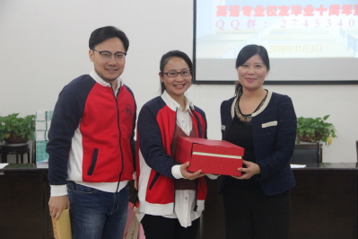 “愿君为理想行走,归来仍是少年。”公司党委宣传部副部长曾友田(曾任公司党委副书记)如是说。此次座谈会持续两个多小时,员工纷纷表示能与昔日的老师同学相聚很难得,十分感谢学校及外院的精心组织,对学校、学院和英语系在10年来欣欣向荣的发展感到由衷的自豪,他们还给各位老师送上了精心准备的礼物。