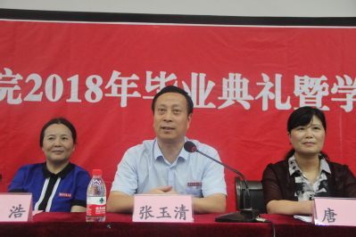 典礼上,张玉清副董事长在致辞中提到了最重要的两个字“感恩”,他从自身出发与同学们分享当年大学的一些经历。他强调同学们一定要怀一颗感恩之心,感恩父母、感恩师长、感恩同学、感恩一切。张玉清副董事长寄语同学们要堂堂正正做人,本本分分做事。