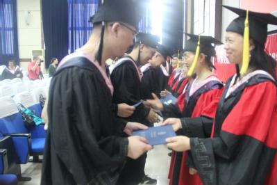 典礼最后,进行了学位授予仪式,张玉清副董事长为毕业生们扶正流苏,并合影留念。
