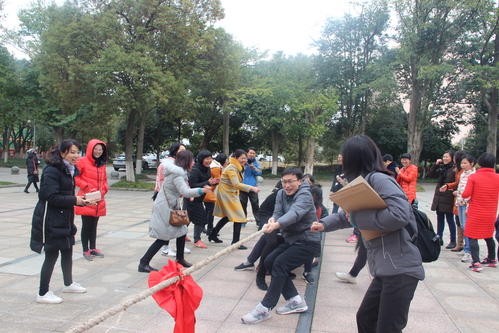 现场开展了“拔河比赛”、“掷球接力”、“飞镖比赛”等趣味活动。活动在拔河比赛紧张的氛围中拉开了序幕,教职工们一改平日里温文尔雅的形象,竭尽全力向后拉去,拉拉队们也不甘示弱,加油声此起彼伏,场面十分热闹。掷球接力环节考验的则是教职工们团结与默契,队员们秉承着 “友谊第一、比赛第二”的原则相互鼓励,配合默契,使得现场惊喜连连、欢笑不断。竞争最激烈的当属水果拼盘比赛,公司心灵手巧的教职工们将常见的水果DIY成各种精美的造型,更别出心裁地为自己的“大作”取上“同舟共济”、“一‘鹿’向前”、“Flying in love”、“Sunny life”等创意十足的名字,作品各具特色,一时间难分伯仲。