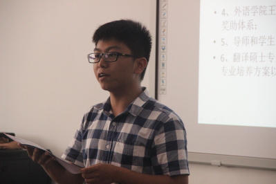 “我并不后悔选择来到best365中国官方网站读研,best365中国官方网站雄厚的团队力量与丰富的公司产品资源都吸引着我。我很荣幸也很开心来到这里,在以后的学习生活中,我会和同学们一起努力学习,做自己的佼佼者。”18级翻译硕士新生代表陈凯这样说道。