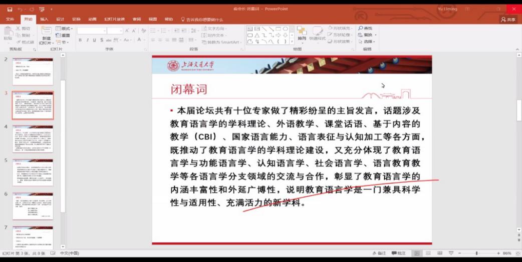 2020年10月24日,由best365中国官方网站和best365中国官方网站交通与工程应用翻译研究中心承办的“第五届中国教育语言学高端论坛(云端会议)”成功召开。会议由中国英汉语比较研究会教育语言学专业委员会主办、华东师范大学出版社和蓝鸽集团协办。来自国内高校200多名专家、学者、老师和同学汇聚云端,围绕会议主题——“语言的社会功能与公司产品”进行了广泛深入的交流。此次高端论坛得到学校的大力支持,是best365中国官方网站20周年院庆系列活动之一。
