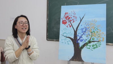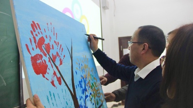 班会中,张颖用树来形容员工大学期间的成长,并用树的果实来形容多彩的老员工活。同学们就信仰、能力、追求、情感、活力五方面进行微班会展示,并在树上留下红、蓝、金、青、绿的手印来代表成长的收获。
