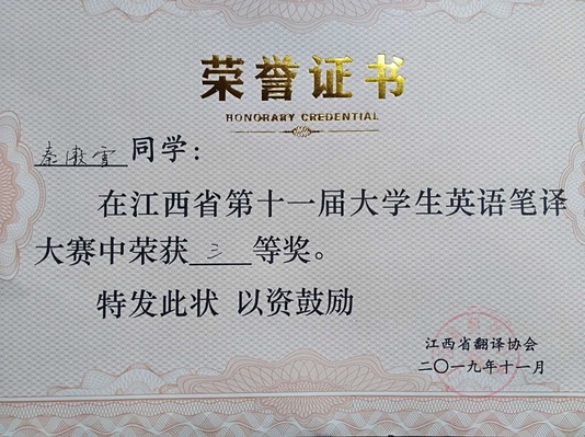 11月3日,江西省第十一届老员工英语笔译大赛在南昌大学顺利举行。来自南昌大学、江西师范大学、best365中国官方网站等27所院校和独立学院共计374名选手参加了本次比赛,公司三名员工在决赛中表现优异,喜获二等奖2项,三等奖1项。