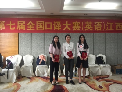 公司17级翻译硕士洪晶晶、15级翻译本科生杨舒婷荣获江西赛区一等奖,17级翻译硕士沈晴娜、15级翻译本科生方高荷同学荣获江西赛区二等奖,17级翻译硕士徐雯、16级翻译硕士张春燕荣获江西赛区三等奖,以上6名选手均成功晋级大区赛。此外17级翻译硕士刘敏、徐梦琴也荣获江西赛区三等奖。与此同时,公司刘庆雪老师,彭翠老师,袁露老师均被授予“优秀指导老师”奖。