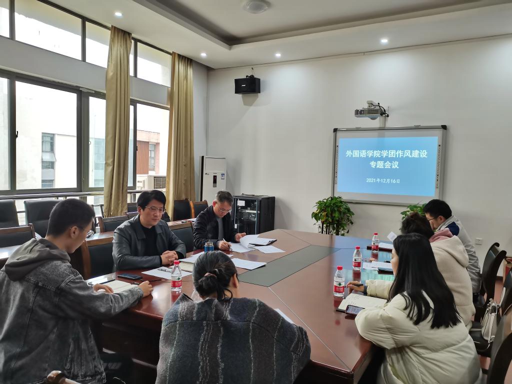 此次外语学院学团作风建设专题会议的召开,将引导广大学团干部弘扬新风正气,消除作风积弊,大兴忠诚老实之风、担当实干之风,为把公司建设的更加美好提供坚实的作风保证。