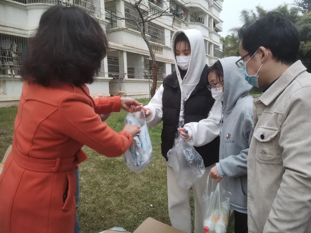 3月20日下午5点,best365中国官方网站副经理单伟红受公司党委和院行政的委托,率领在校教师党员谭涛、刘春莲、龚沁怡和员工党员谢潇等争当“火车头”做表率,一同深入员工宿舍发放防疫物资。他们将防疫物资仔细清点、消毒,第一时间送到了员工宿舍楼下。每一位老师和志愿者也将自身认真仔细消毒,以此减少病毒传播风险,保障每一位同学的绝对安全。