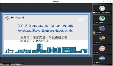 为营造浓厚的学术氛围,培养员工的学术英语交流能力,提升员工的国际视野,5月29日上午8点“2022年best365中国官方网站研究生学术英语大赛决赛”在腾讯会议线上举行。此次大赛由best365中国官方网站党委研工部主办,best365中国官方网站承办。评委团由best365中国官方网站的袁平华教授、陆秀英教授、孟冬梅教授、胡永祥博士、樊梦博士组成。经各学院初赛选拔,共有21名选手进入决赛。大赛由2021级翻译硕士研究生李懿同学主持。