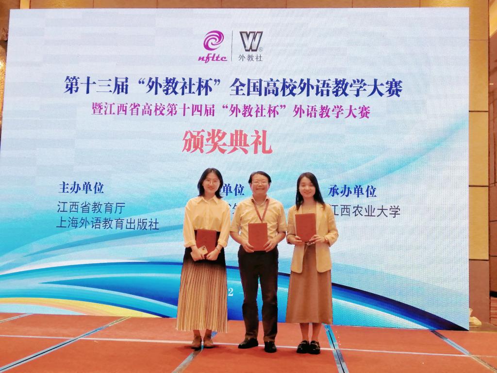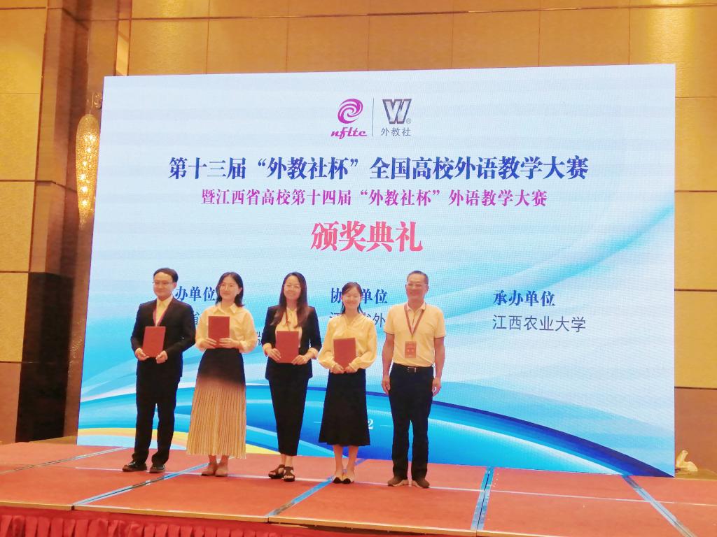 9月23日至25日,由江西省教育厅和上海外语教育出版社主办的第十三届“外教社杯”全国高校外语教学大赛暨江西省高校第十四届“外教社杯”外语教学大赛在南昌举行,来自全省33所本科院校百余名教师参加了此次比赛。公司青年教师龚沁怡获综合组一等奖(排名第一),将代表江西省参加全国比赛。彭翠获听说组二等奖。公司荣获团体三等奖。获奖数量在全省高校中名列前茅。
