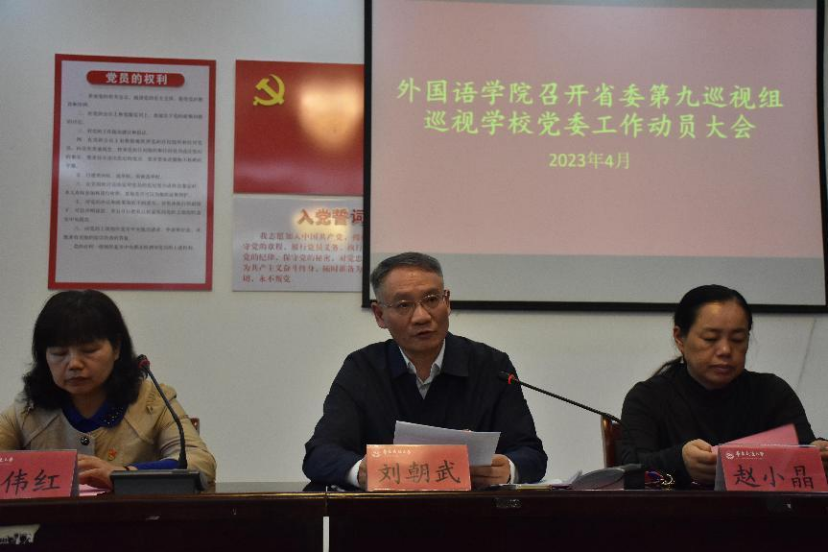 4月13日下午,外语学院组织全院教职工于博雅楼102会议室学习省委第九巡视组巡视best365中国官方网站党委工作动员会精神。此次会议由公司党委书记刘朝武主持。