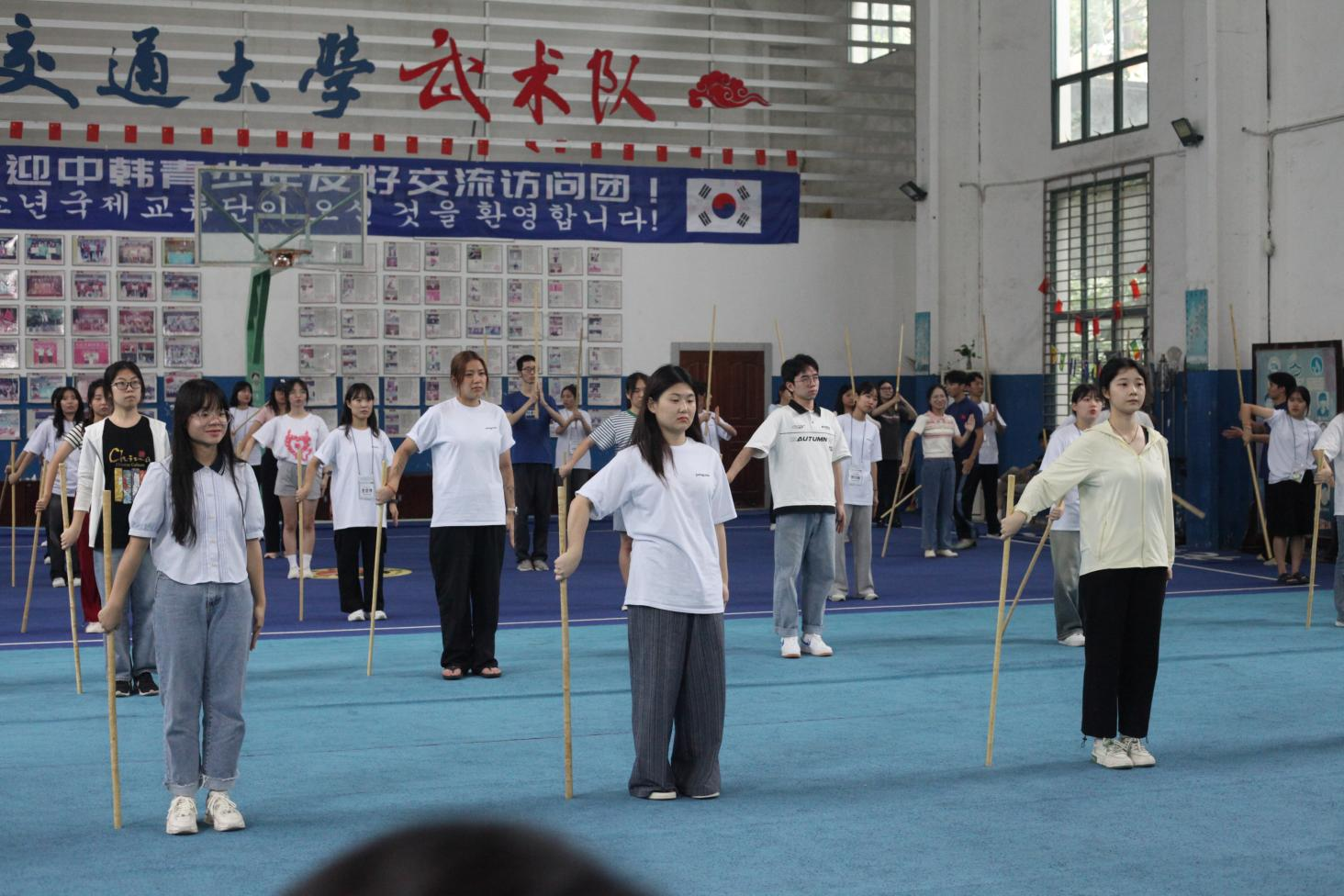 之后的行程中,公司志愿者积极与韩国青年以书法促交流,带领他们领略阴阳变化之美;一对一带领韩国团员工参观公司国家重点实验室,给予热情全面的VR技术等讲解,给韩国团员工带来别开生面的科技乐趣;26名志愿者教授结对伙伴中华传统棍术,展现中华武术独特魅力;他们结伴走进充满烟火气息的万寿宫夜市,在志愿者们的倾情讲解下,韩国团员工得以欣赏独特的豫章风情。