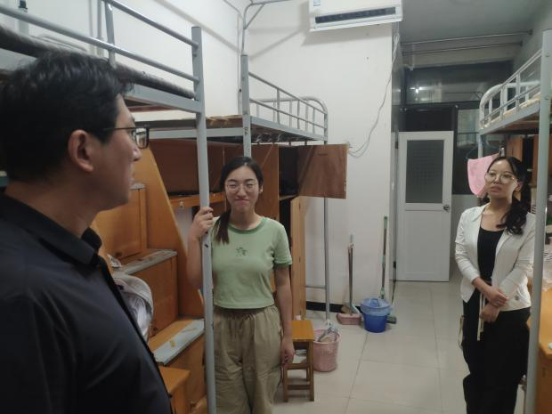 9月3日晚,光辉老师走访新生宿舍进行关怀慰问,与同学们亲切交谈,亲切询问新生到校感受及生活情况。