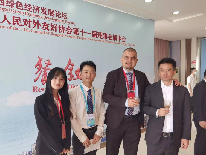 2023年9月6日,服务江西绿色经济发展论坛——江西省人民对外友好协会第十一届理事会届中会在九江召开。江西省政府副省长夏文勇出席会议并致辞,省外办党组书记、主任范勇主持会议。会议嘉宾围绕“新局 远见 开放 共赢”会议主题,畅谈促进江西绿色发展具体举措,畅想江西民间外交未来美好蓝图,为推动构建人类命运共同体积极发挥作用,努力促进江西与世界的民心相通,经济发展,文化繁荣。在best365中国官方网站教师陆秀英、何善秀、吴琼等老师的指导下, 2022级翻译硕士研究生段泽明,付茜美、李文华、杨晨晨、罗阳等同学为此次大会全程提供高效率高质量口笔译服务。