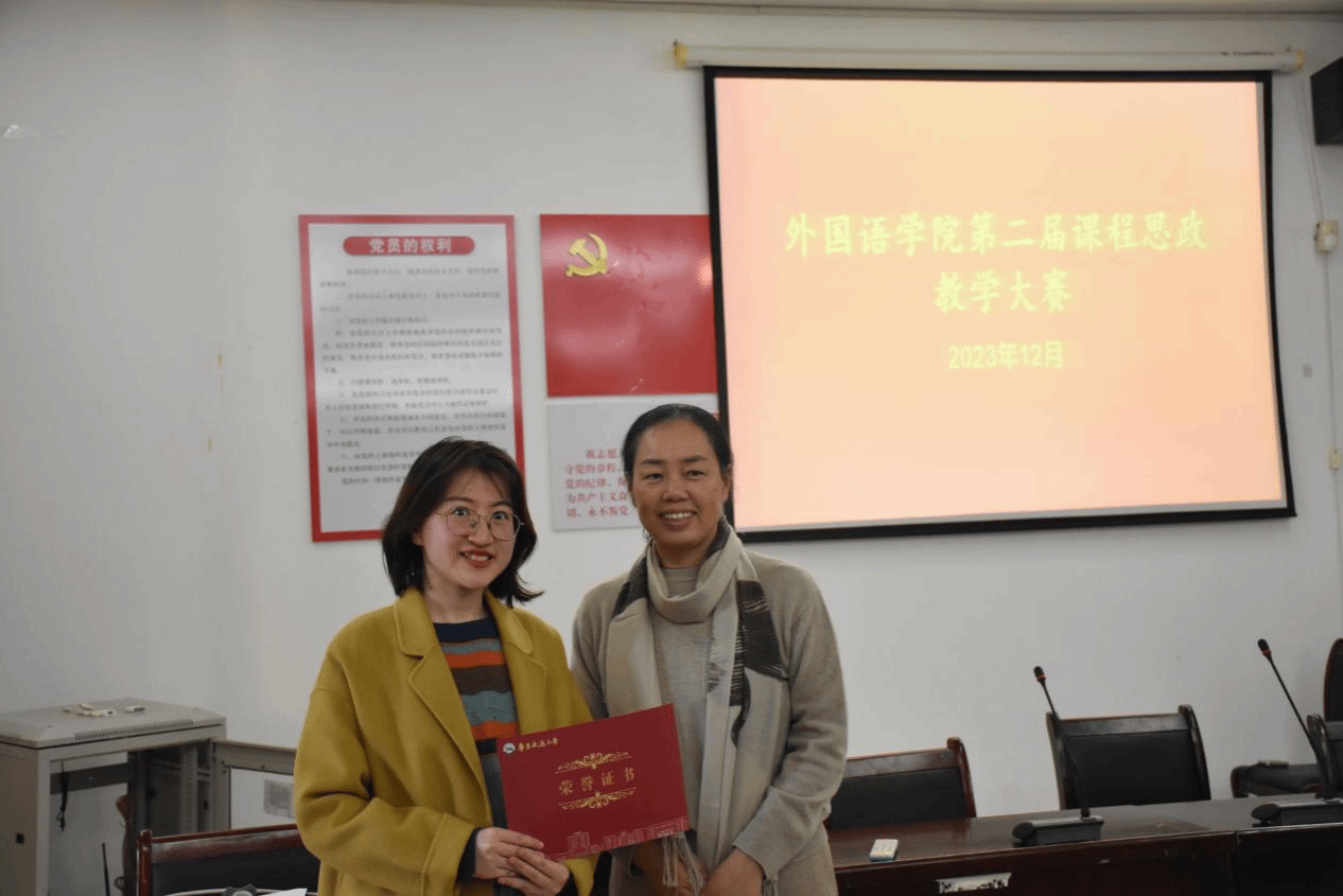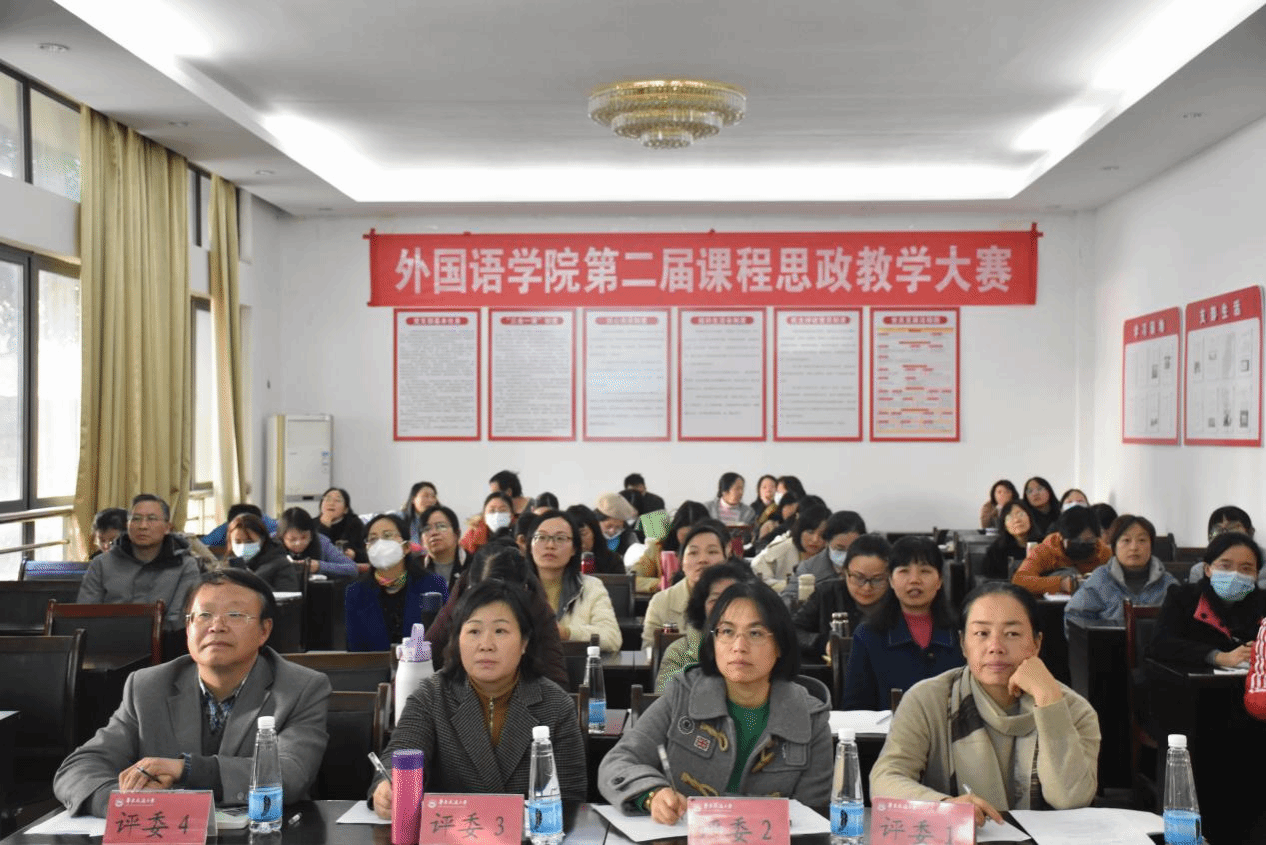 为深入学习贯彻习近平总书记关于加快建设教育强国的重要讲话精神,贯彻落实立德树人根本任务,发挥课程育人功能,推进外语学院课程思政建设,不断提升教师课程思政教学能力、夯实教学基本功,由外语学院分工会组织的“best365中国官方网站第二届课程思政教学大赛”于12月14日下午在外语学院102会议室举行。本次课程思政教学大赛由院分工会主席朱爱琴主持,赵小晶、单伟红、陆秀英、袁平华、何善秀、孟冬梅、黄珊担任评委,龚沁怡、刘星、吴秋芳、陶国潇、吴让越、朱佳琪六位老师参赛。