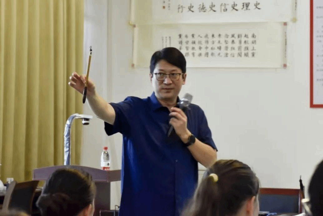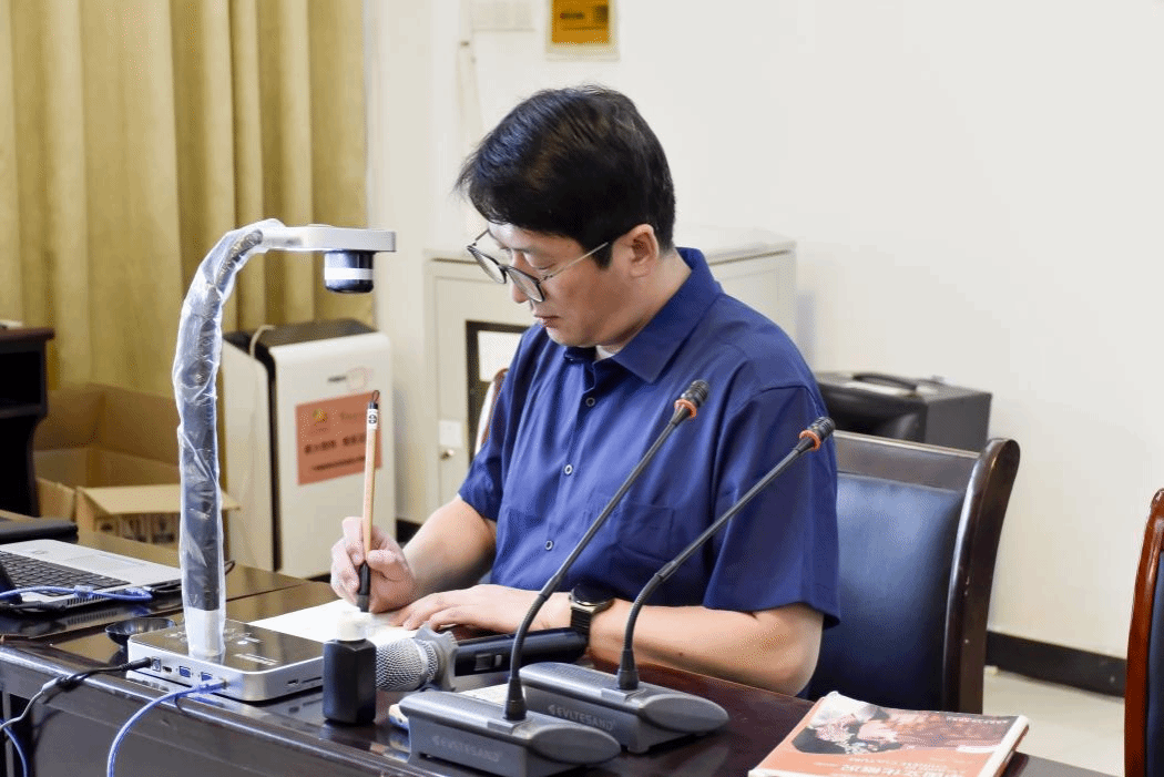 活动伊始,公司党委副书记光辉为同学们介绍中国书法艺术的起源和发展。他提到,甲骨文是中国现存最古老的文字,随着文明的演进逐渐发展成楷书、隶书、行书等多种形式,同时列举了王羲之、颜真卿等书法名家,让同学们对中国书法艺术有了基本认识。