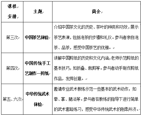 后续活动开展如下表所示,更多传统文化体验,敬请期待!